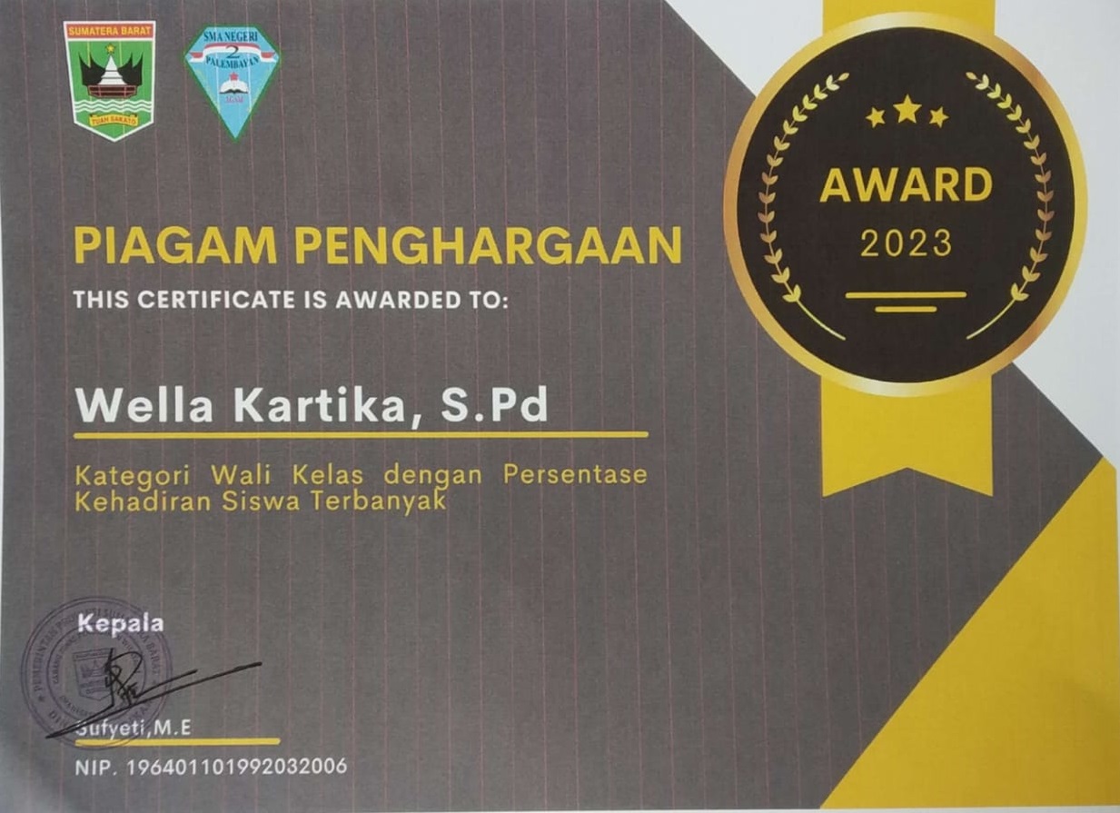 Sertifikat Penghargaan Wella Kartika,S.Pd